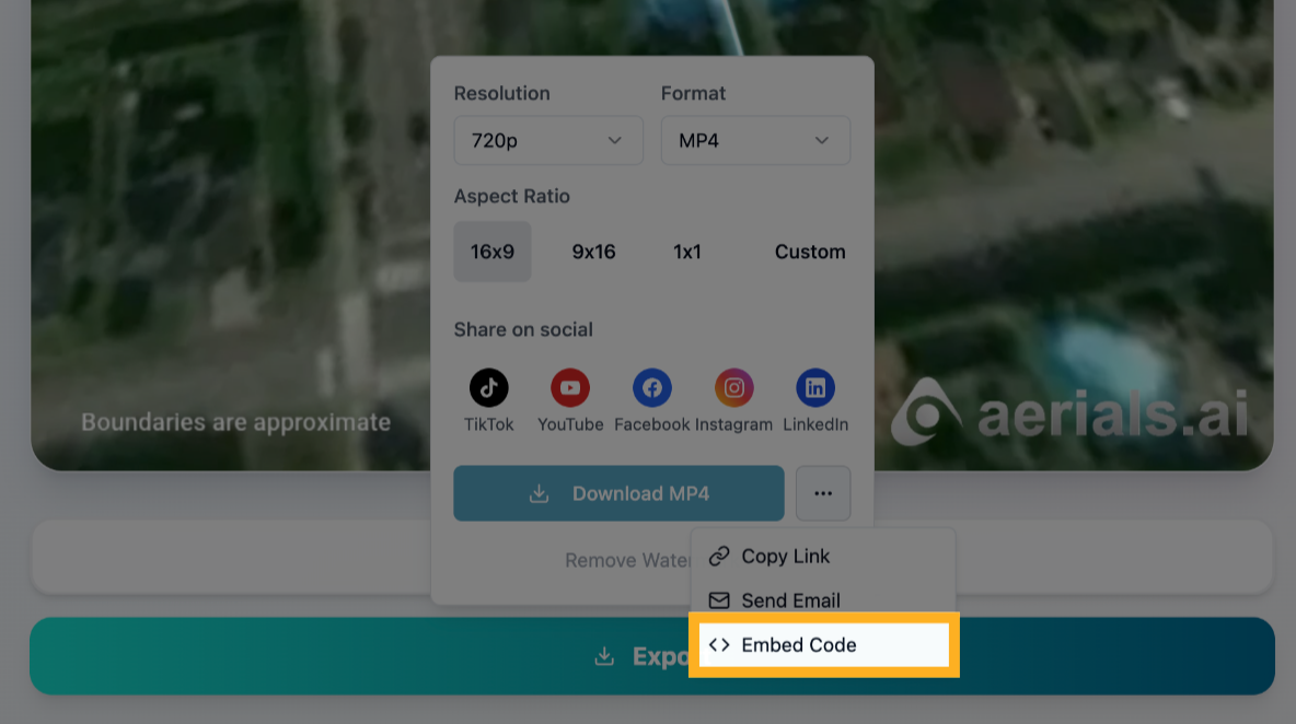 4) To embed in a website, click “Embed Code”